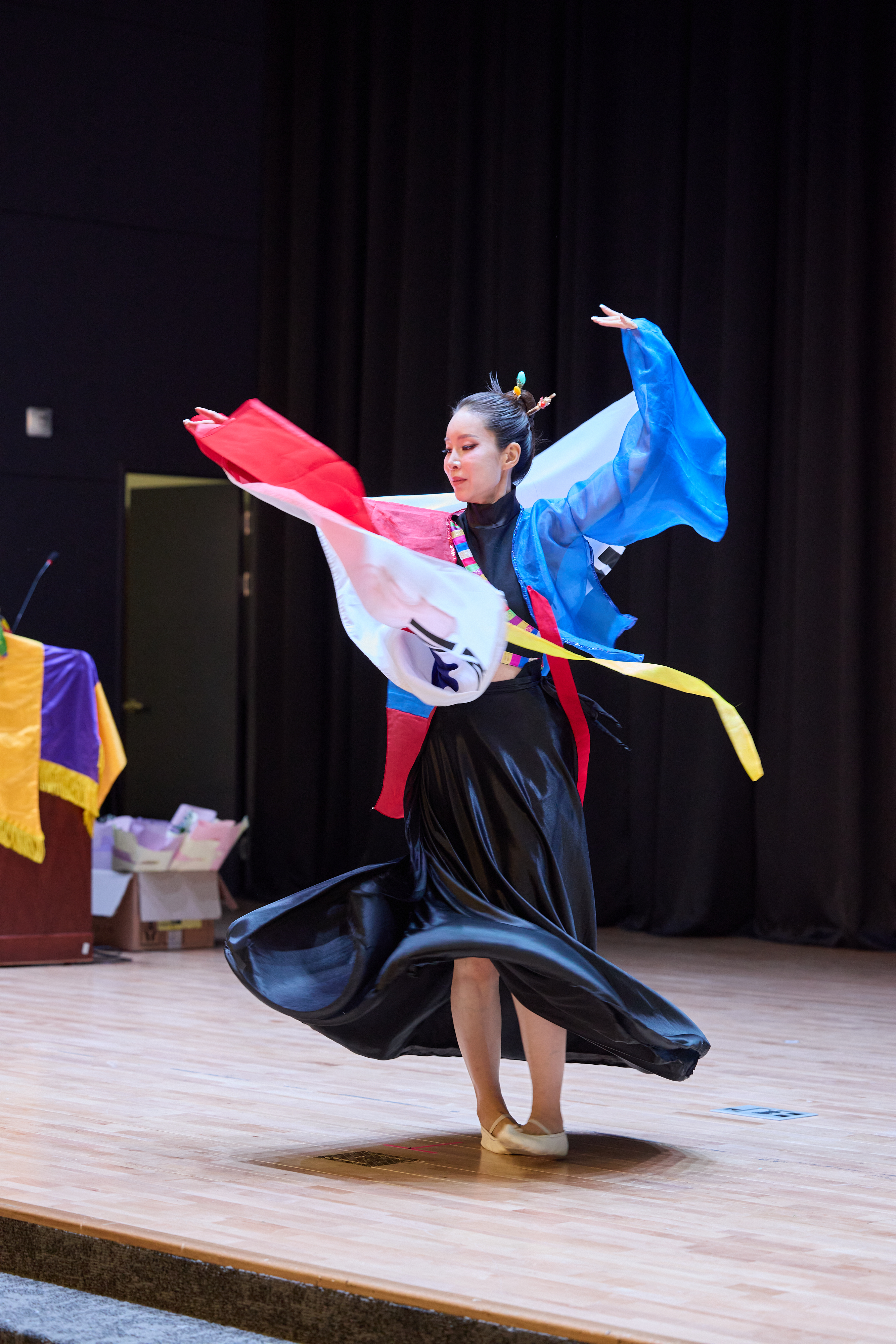 지난 1일(화) 고봉라이온스클럽 회장 취임식 오프닝 무대에 오른 티키팀 미시즈 모델들은 전통 색동 한복을 현대적으로 재해석한 ‘색동 한복슈트’를 입고 런웨이를 장식하며 이목을 집중시켰다.