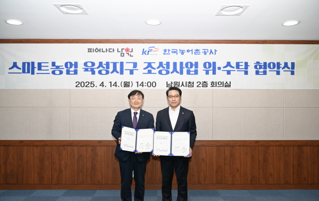 [전북소비자저널=최훈 기자] 남원시가 14일 한국농어촌공사 전북지역본부와 '스마트농업 육성지구 조성사업'의 원활한 추진을 위한 일괄 위·수탁 협약을 체결했다.