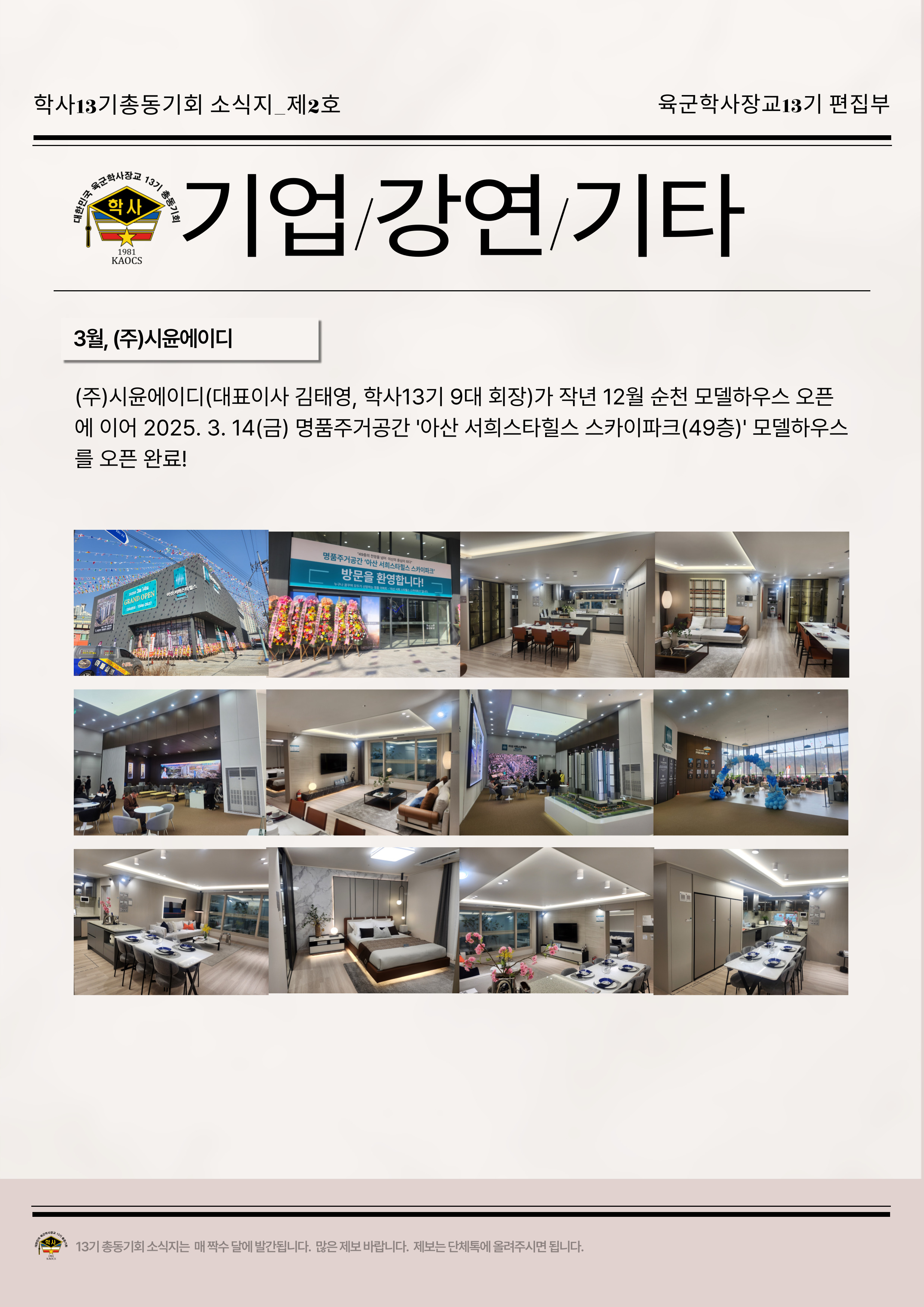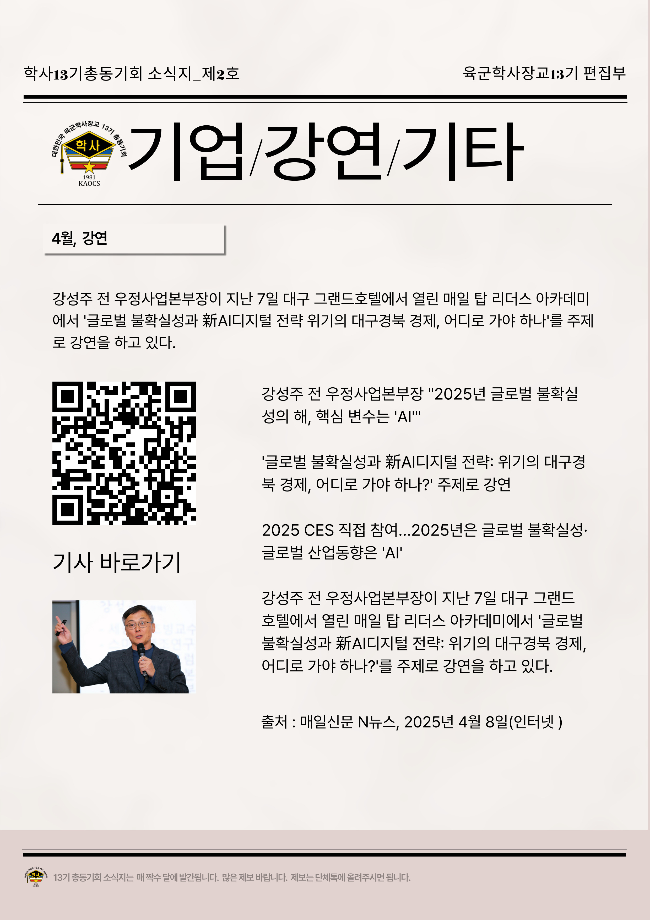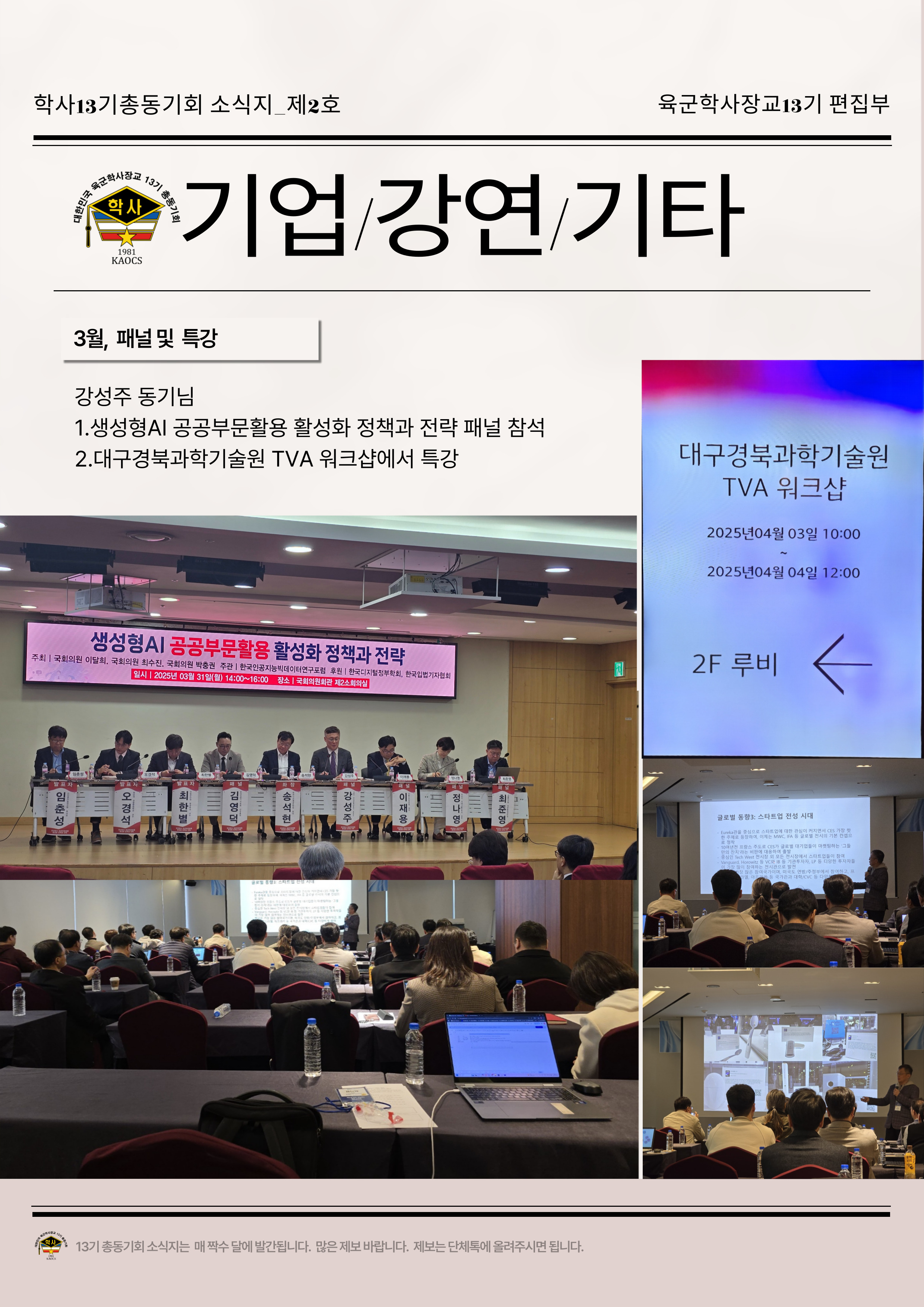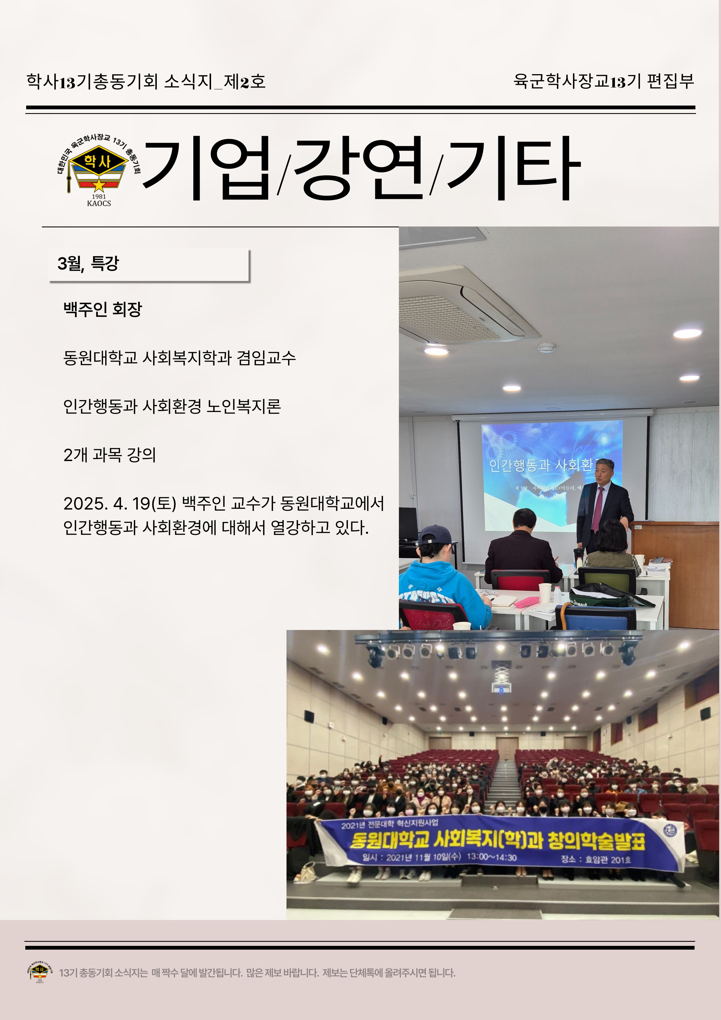 육군학사장교13기총동기회 소식지 제2호_기업/강연/기타