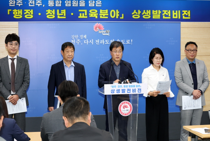 전주시와 완주·전주 상생발전 전주시민협의회(위원장 박진상)가 26일 시청 브리핑룸에서 △공정한 행정 운영체계 구축 △교육격차 해소 △청년의 안정적 정착 지원 등을 골자로 한 구체적인 통합시 운영 방향을 담은 행정·교육·청년 분야의 상생발전 비전을 밝혔다.