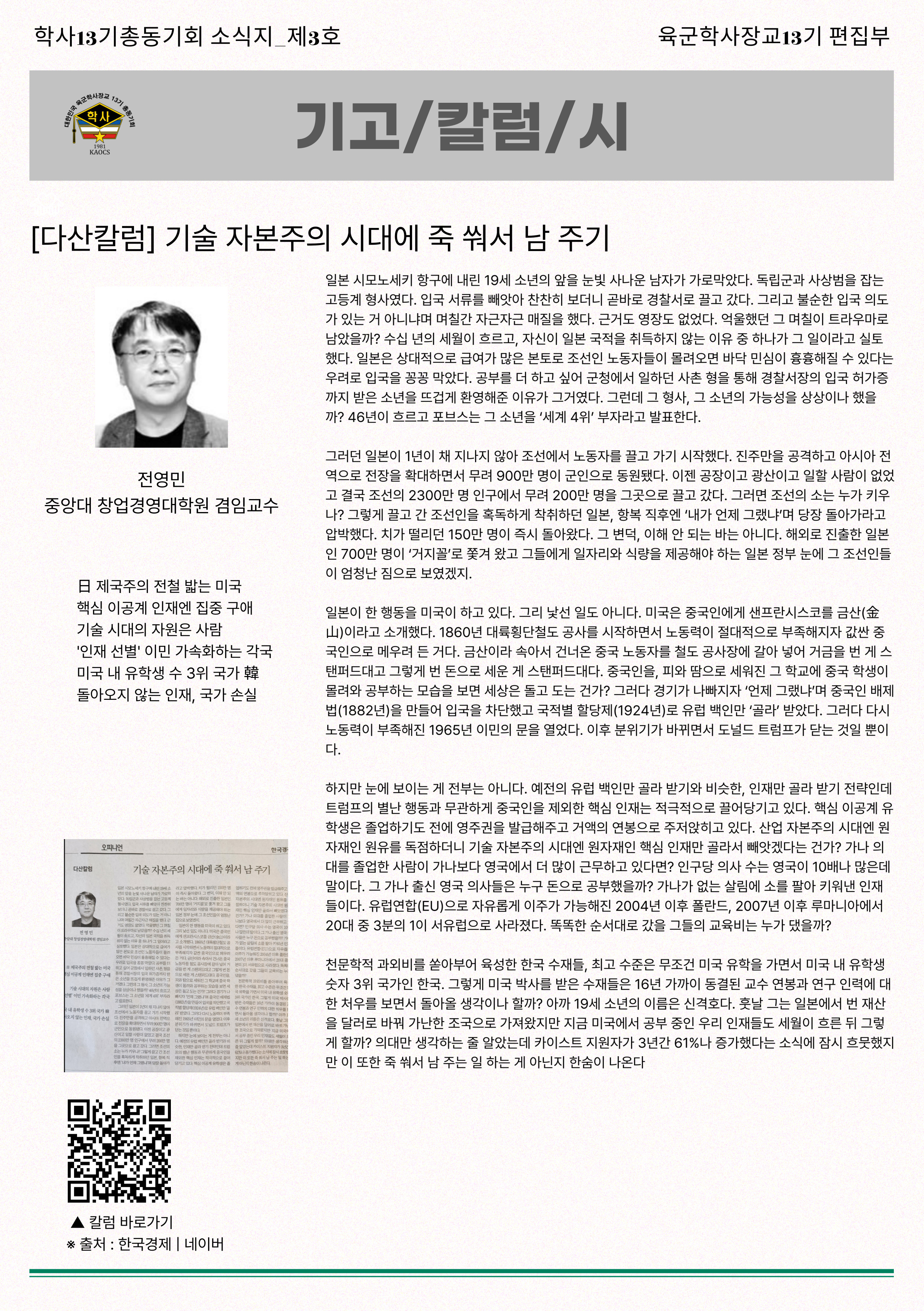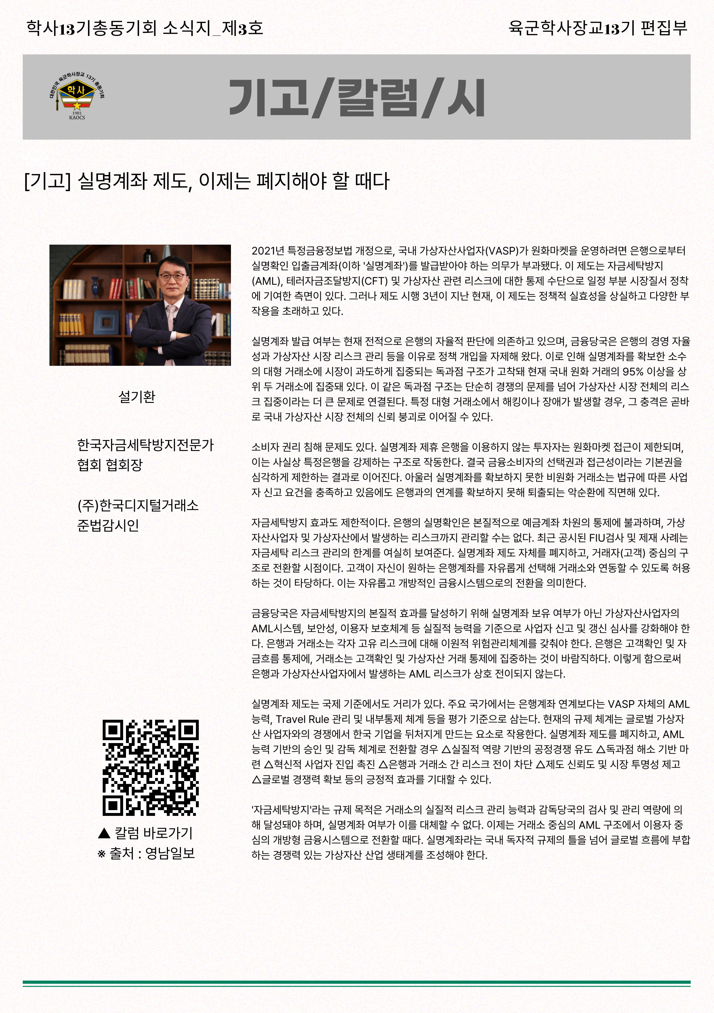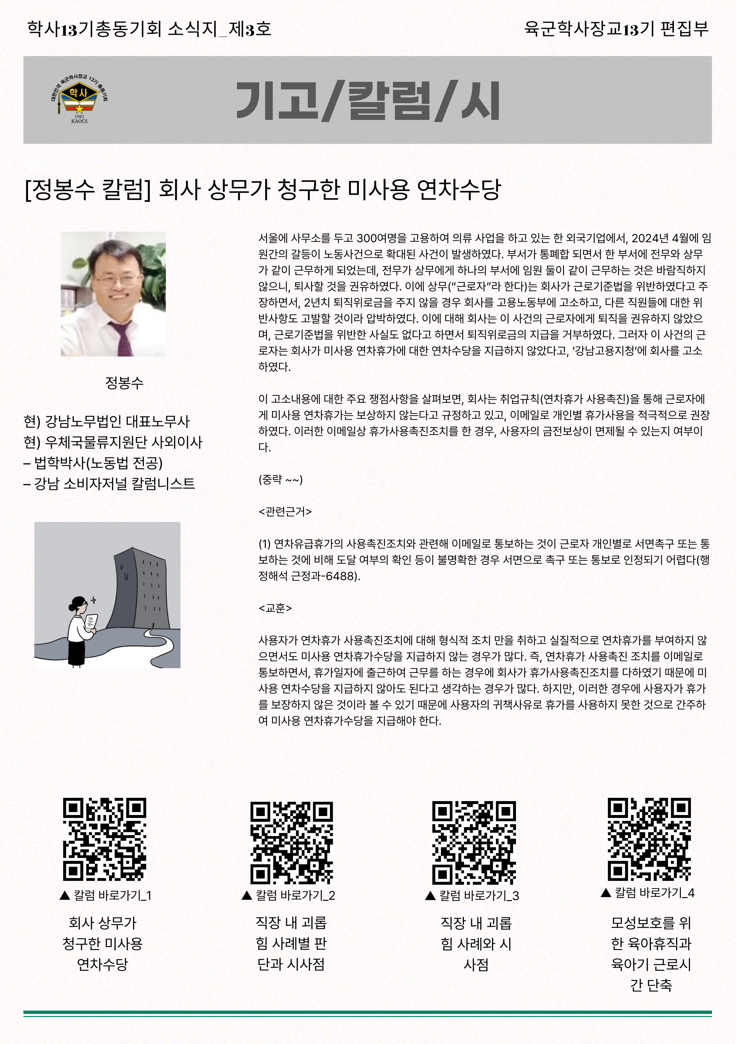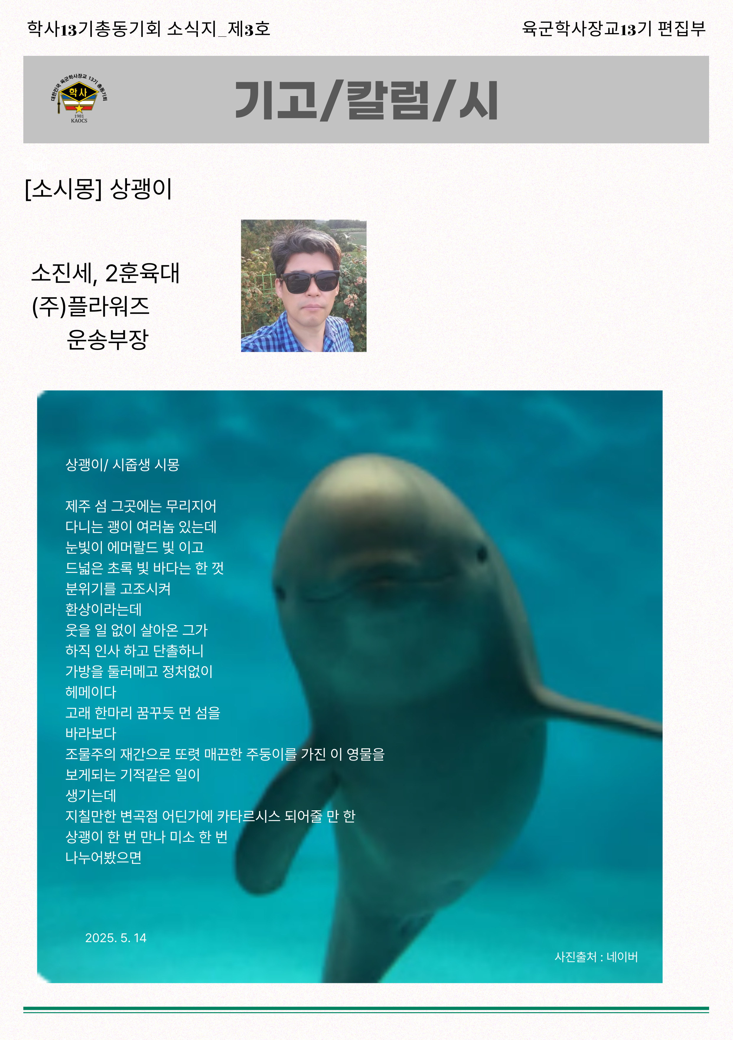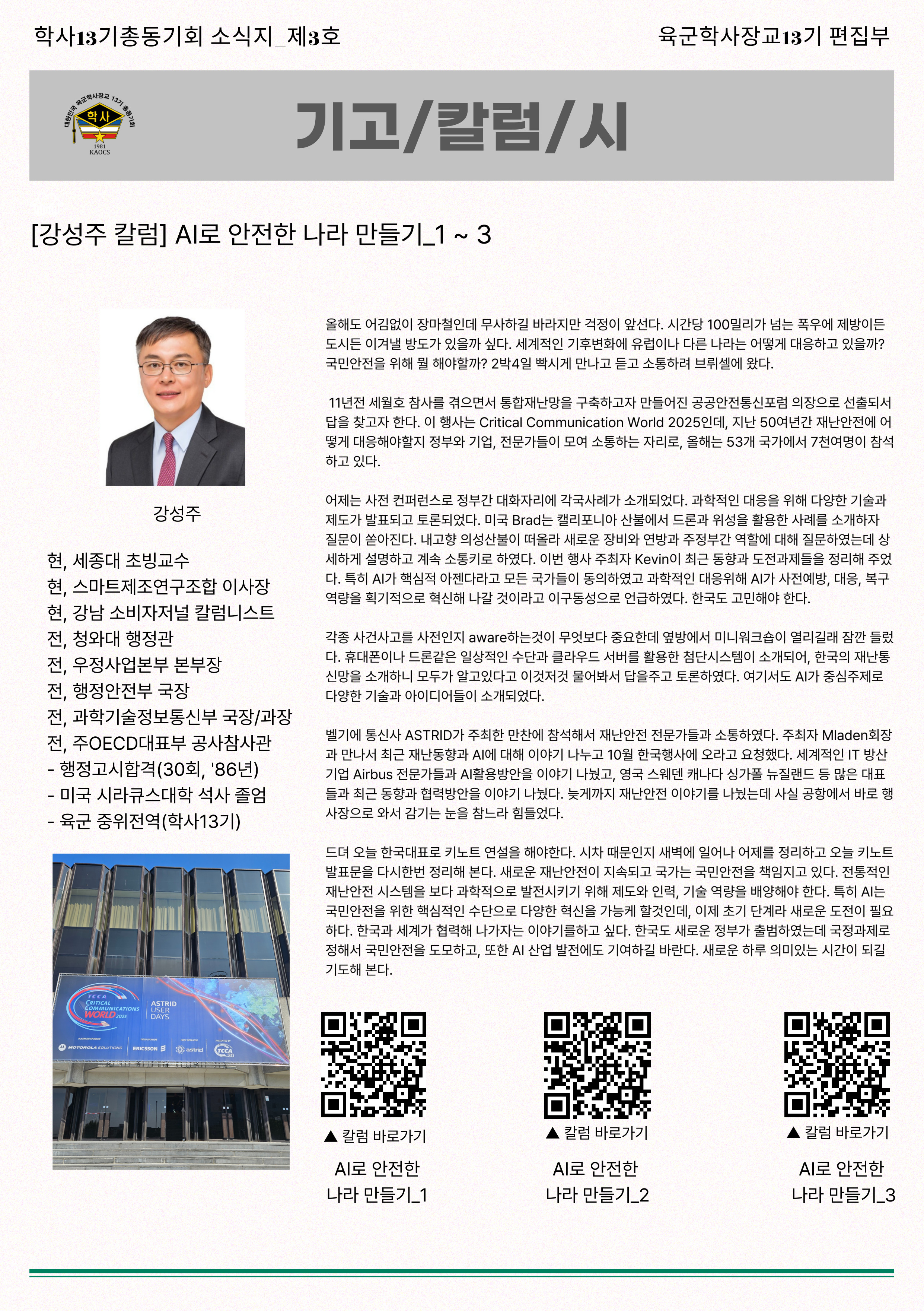 보도자료 및 언론 소비자평가 기본정보/웹진 육군학사장교13기총동기회 소식지 제3회_기고/칼럼/시 강남 소비자저널 2025. 6. 28. 20:58 반응형 반응형 저작자표시 동일조건 (새창열림)