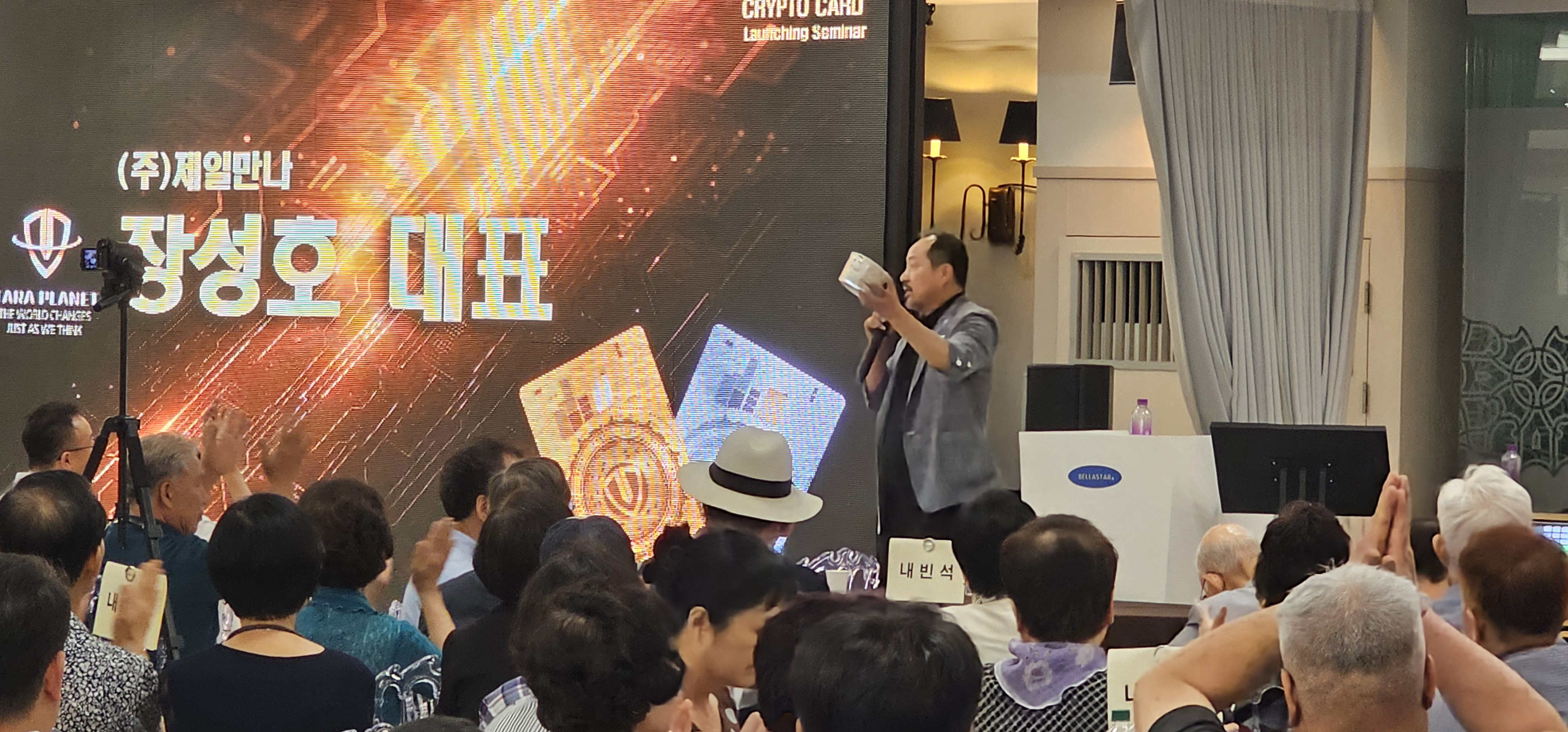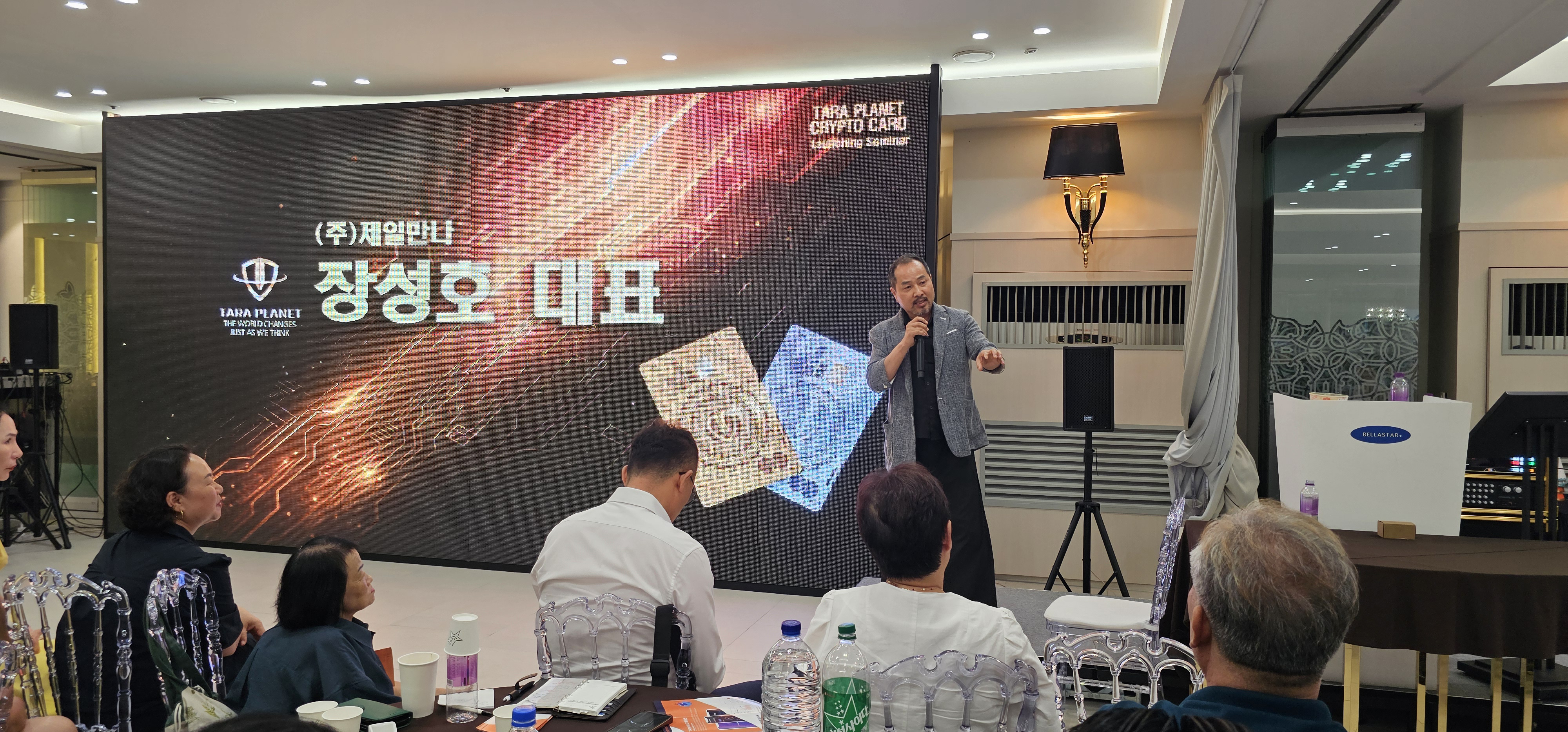이날 타라 플래닛 크립토 카드 발표 등 여러 주제로 특강이 있었는데, 그 중 (주)제일만나 장 대표의 발표에 참석자들의 환호를 받았다.