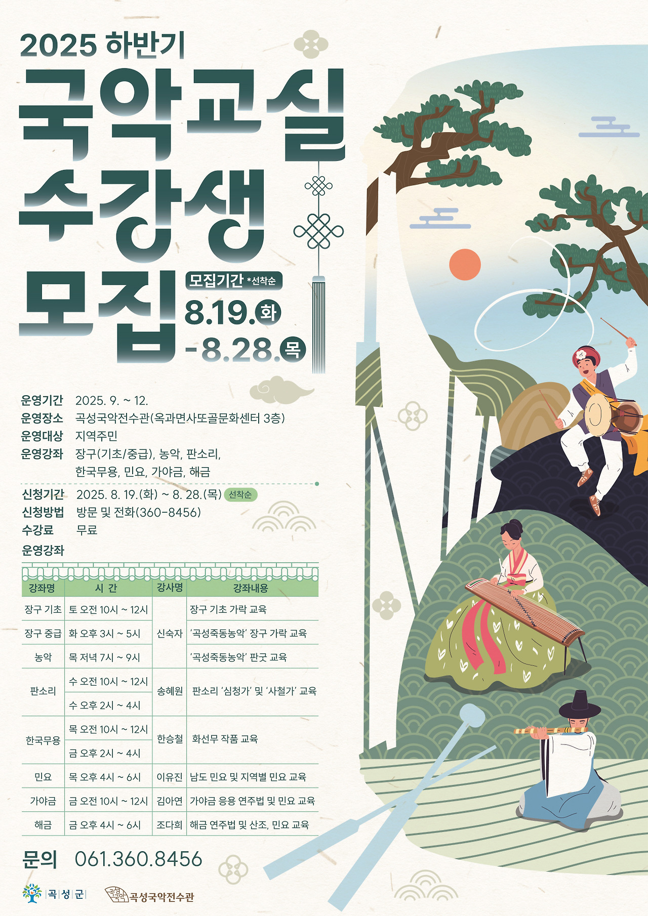 곡성국악전수관 “2025년 하반기 국악교실” 수강생 모집