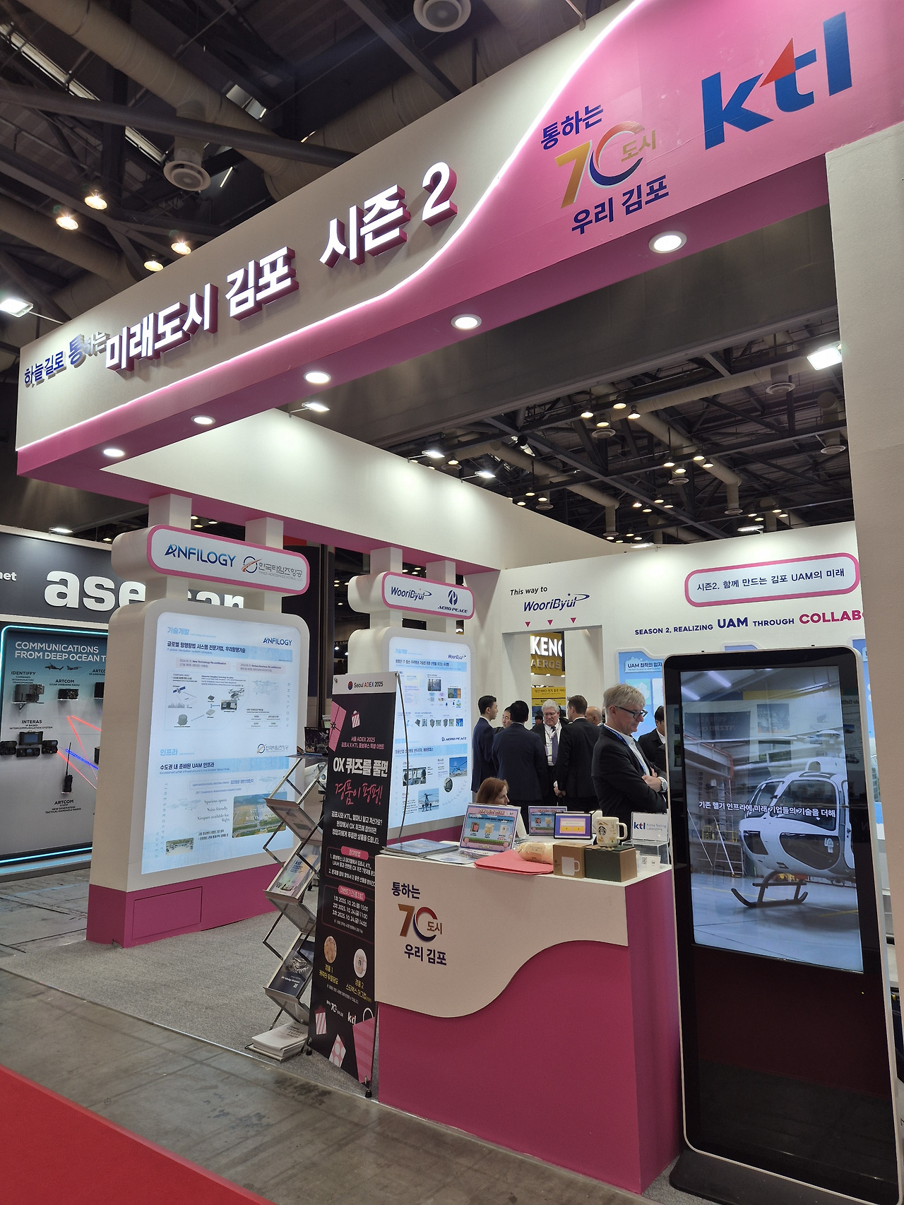 김포시는 이번 전시회에서 올해 3월 UAM 네트워킹 기업 모집을 통해 구성된 관내 우리별·우리항행기술·한국타임즈항공·에어로피스의 성과와 추진현황을 소개하고, 기업 관계자가 직접 홍보·상담을 수행하도록 지원함으로써 기업의 실질적 사업기회 발굴과 네트워크 확대를 도왔다,