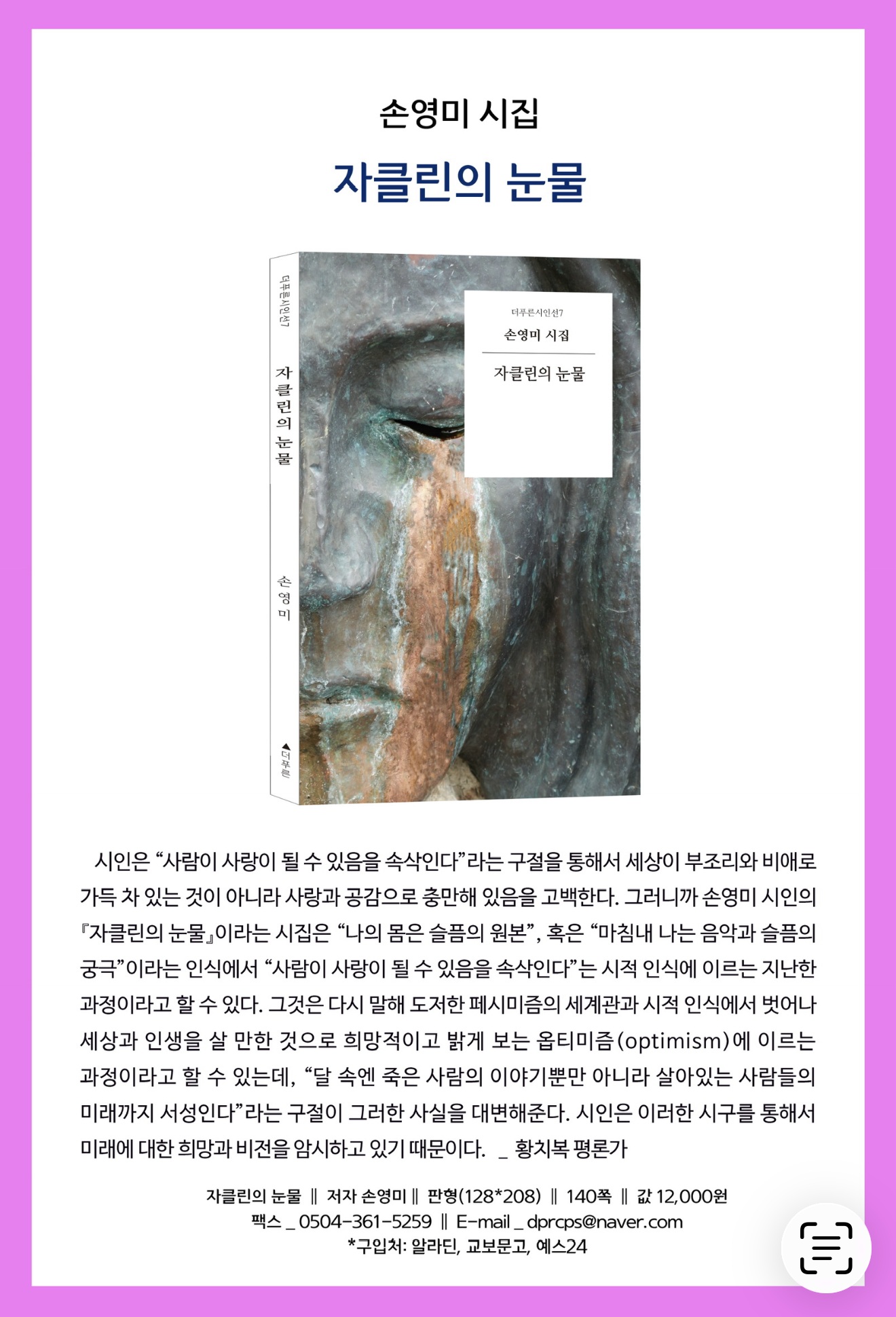![]() ▲사진=『자클린의 눈물』 저자 손영미 시인 & 극작가 ⓒ강남 소비자저널 |